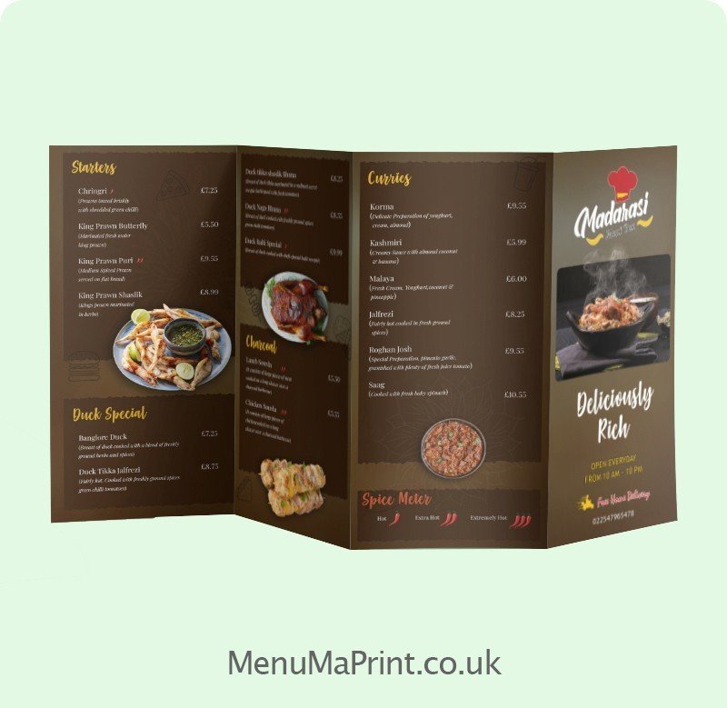 MenuMa Print offers enticing a4+ and Indian Takeaway Menu in premium quality. Extended Menu is designed by our proficient graphical designers and no faff.